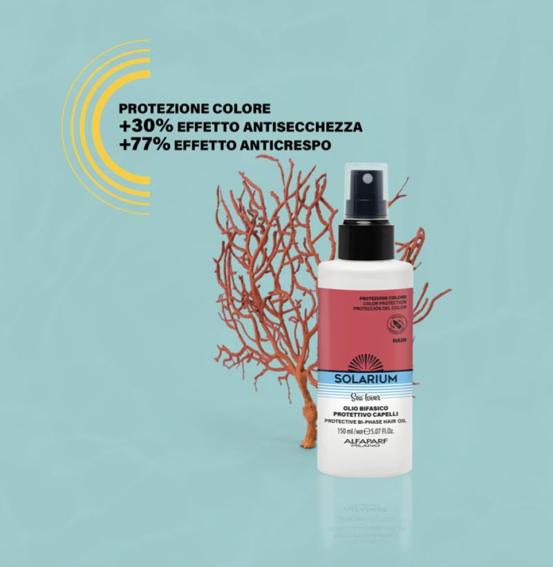 Olio solare bifasico in spray, specifico per capelli, che protegge, nutre e ridensifica la fibra capillare. Un vero e proprio concentrato di attivi per preservare il colore e la bellezza del capello, donando idratazione, luminosità e morbidezza. Non unge né appesantisce, lasciando il capello morbido ed elastico.